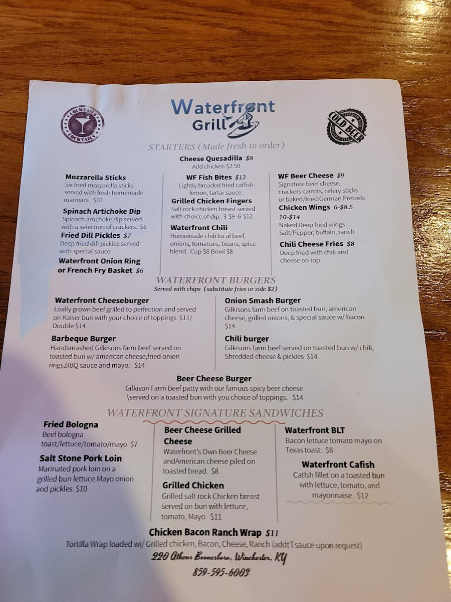 Welcome to Waterfront Grill and Gathering, a hidden gem located at 220 Athens Boonesboro Rd, Winchester, KY. Nestled by the river, this inviting eatery boasts not only a vibrant atmosphere but also a diverse menu that caters to all tastes.